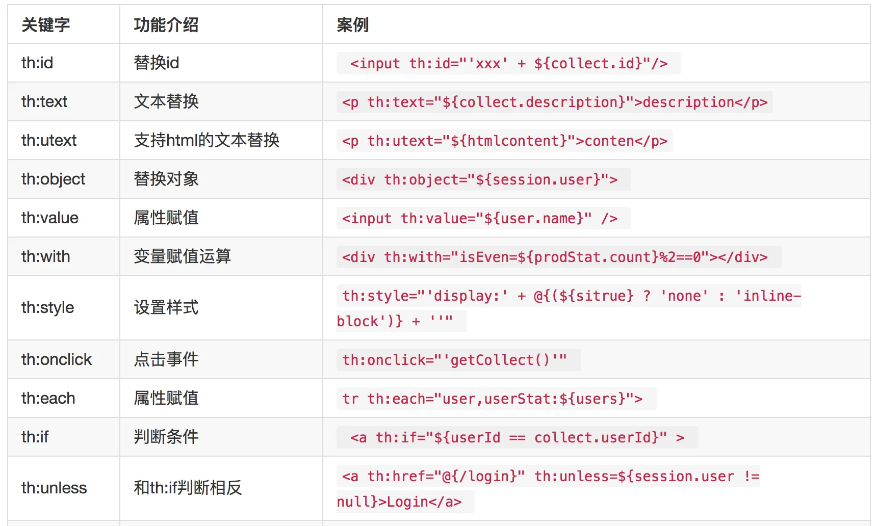 Thymeleaf 常用关键字